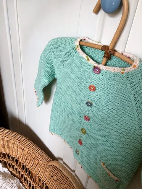 ガーター編みでラグラン袖の子ども用カーディガンを編みました。